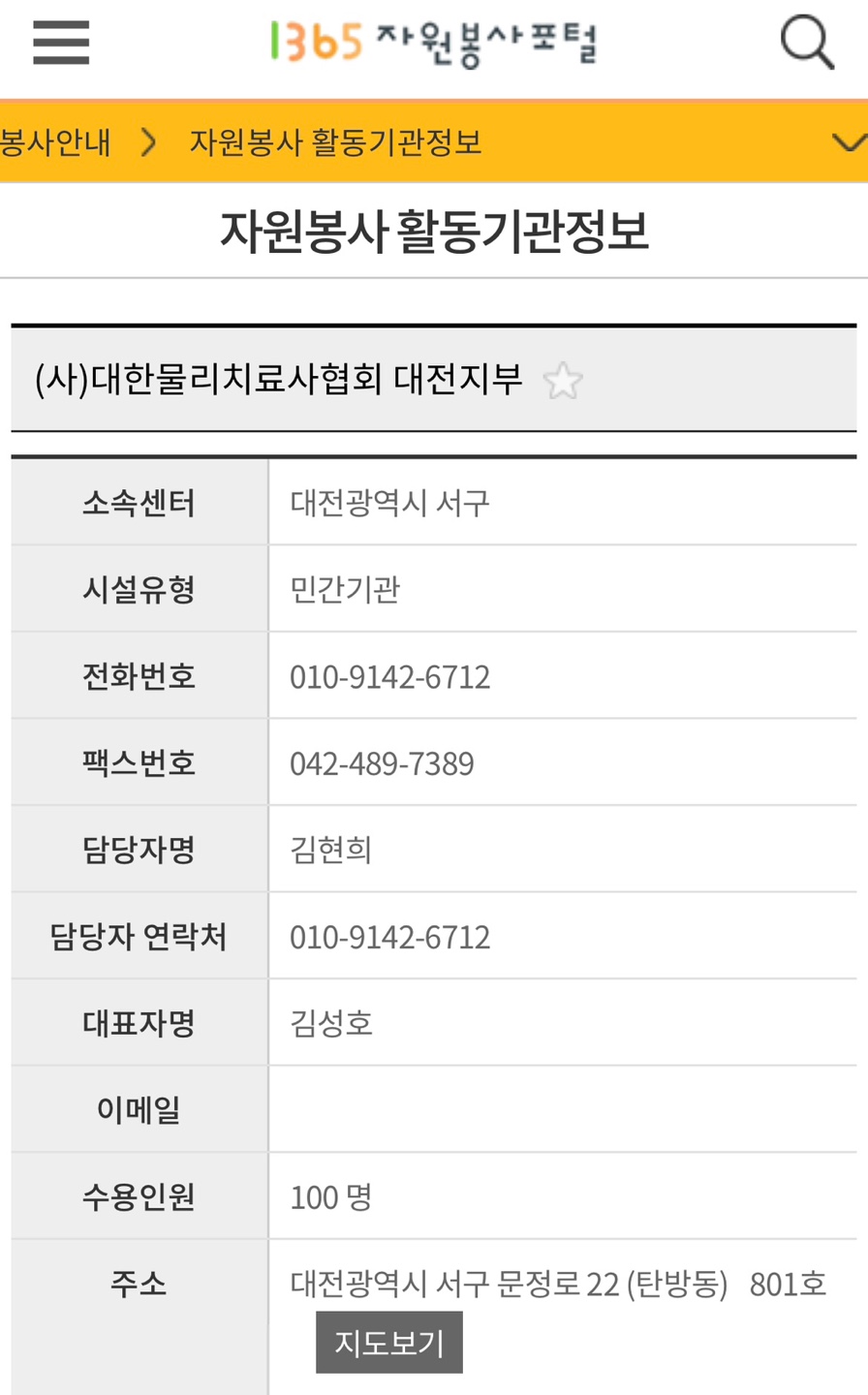 <(사)대한물리치료사협회 대전지부가 서구자원봉사센터에 활동처 등록 되었음을 알려드립니다 !!>