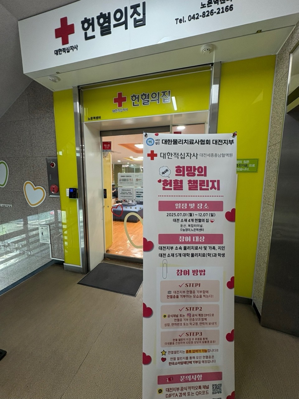 대한물리치료사협회 대전지부에서 헌혈챌린지를 실시합니다.